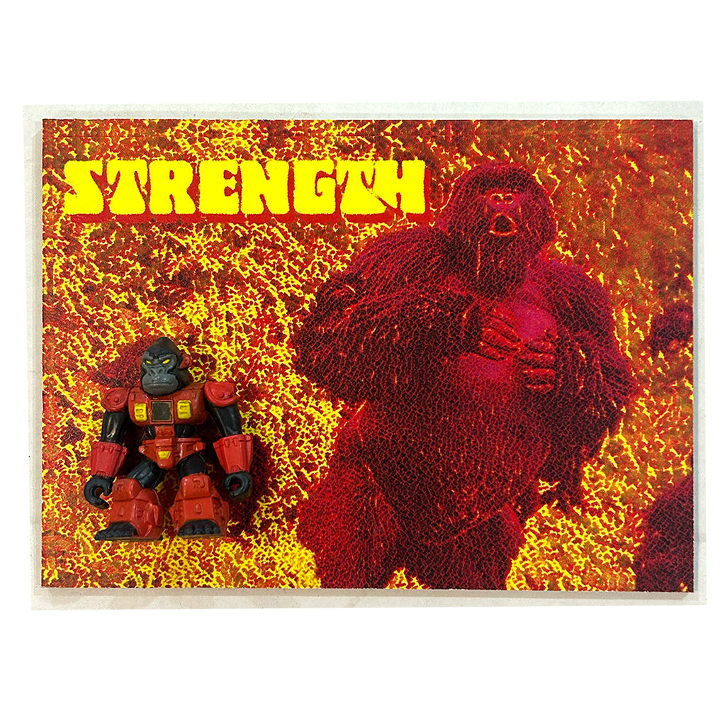 One Repurposed vintage BATTLE BEAST Action Figure mounted on a 5"x7" printed masonite board. One-of-a-Kind item created by Famous Pop Artist The SUPER SUCKLORD. Signed on Back