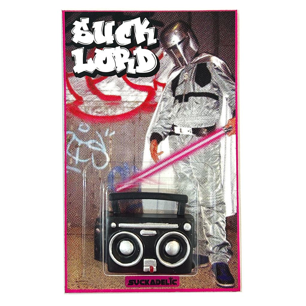One 2" Hand Painted Action Figure accessory on a 6" x 4" Double Sided Blister Package. Limited Edition item created by Famous Pop Artist The SUPER SUCKLORD