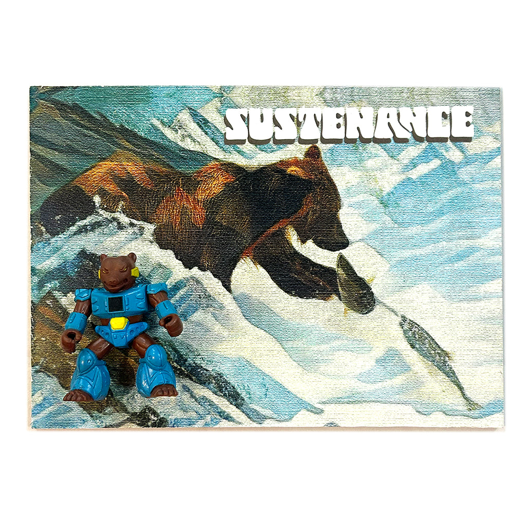 One Repurposed vintage BATTLE BEAST Action Figure mounted on a 5"x7" printed masonite board. One-of-a-Kind item created by Famous Pop Artist The SUPER SUCKLORD. Signed on Back